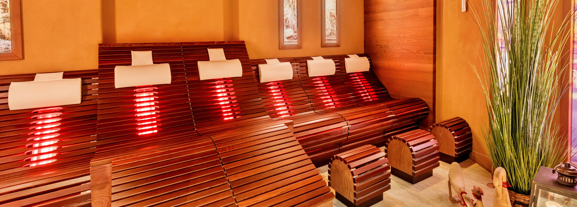 Diese kreislaufschonende, ca. 50°C warme Sauna vermittelt ein Gefühl des Wohlbehagens. Durch die langsame Erwärmung des Körpers wird der Ent- schlackungsprozess angeregt.